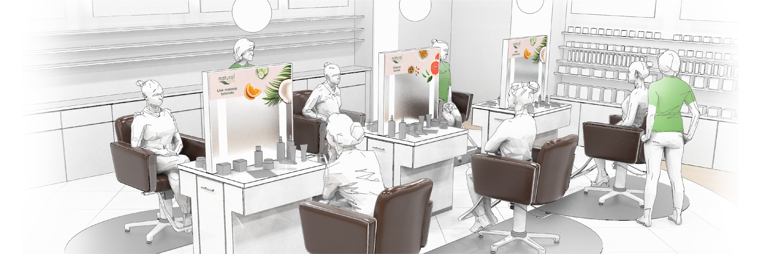In-store kiosk display that provides shoppers with an intimate experience to promote natural products.